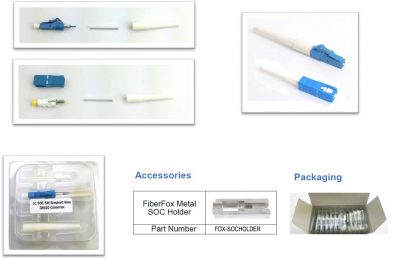 O conector FOX Splice on Connector (SOC) é um conector instalável em campo que é ligado por fusão ao final do cabo. A ponteira pré-polida de fábrica elimina a necessidade de polimento, adesivos, géis de indexação e crimpagem no campo. O uso de um splicer de fusão para terminar o conector no campo fornece uma conexão muito confiável e minimiza o potencial de erro do operador e o caro refugo do conector. Ele também aborda as preocupações de perda de retorno associadas a outros métodos de Conectorização de campo. Este processo avançado produz um desempenho verdadeiro da APC para configurações SC / APC e LC / APC e é compatível com o GR-326-CORE. A emenda em conectores é compatível com a maioria dos splicers de fusão que usam plataformas de emenda de fusão baseadas em porta-fibra.